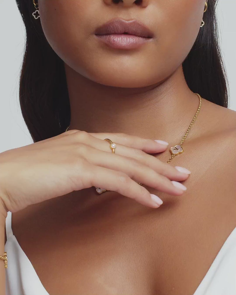 The ultimate designer-inspired custom jewelry, our stunning clover pieces are available in a beautiful mother of pearl affect, a chic fluted texture or a gorgeous molten finish. Complete with the initials or name of your choice, stack with other chains from our collection to complete your look.
