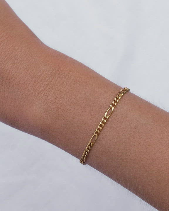 Small Figaro Chain Bracelet (Gold) adjustable from 7-9in