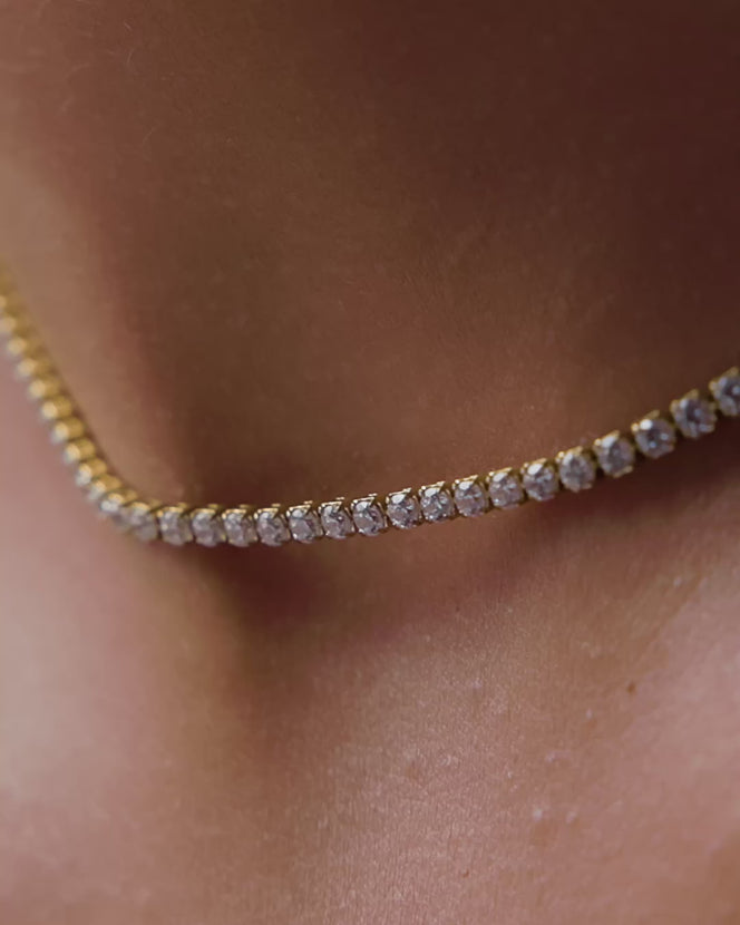 Fine Tennis Chain Necklace (Gold)