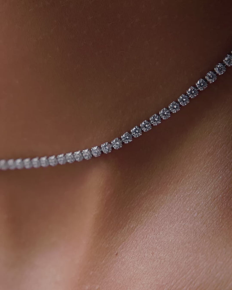 Fine Tennis Chain Necklace (Silver)