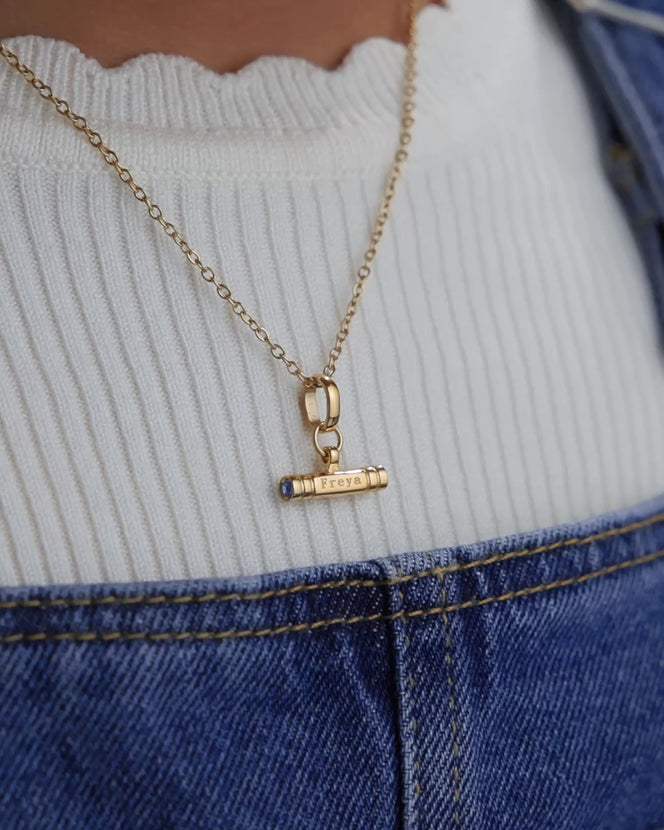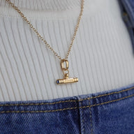 Mini Custom Stamped T-Bar Necklace (Gold)