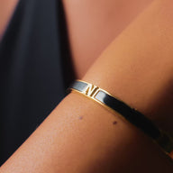 Mini Icon Black Initial Bangle (Gold)