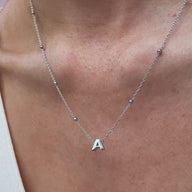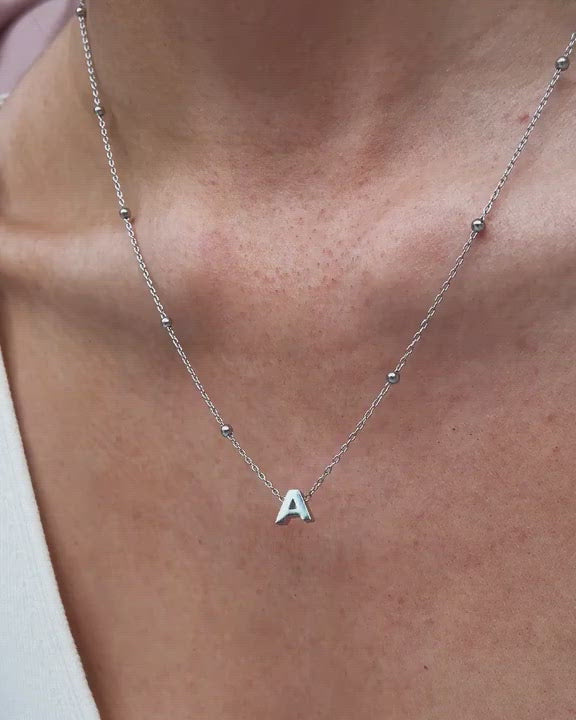 Mini Letter Sphere Chain Necklace (Silver) adjustable from 18-20in