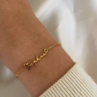 A super sweet update to our best-selling name bracelet, the Mini Signature features a pretty, smaller version of our iconic font in the name or word of your choice. Handmade and totally unique to you, play with up to 12 characters and select your favourite chain to create the ultimate bespoke bracelet, perfect to wear every day.