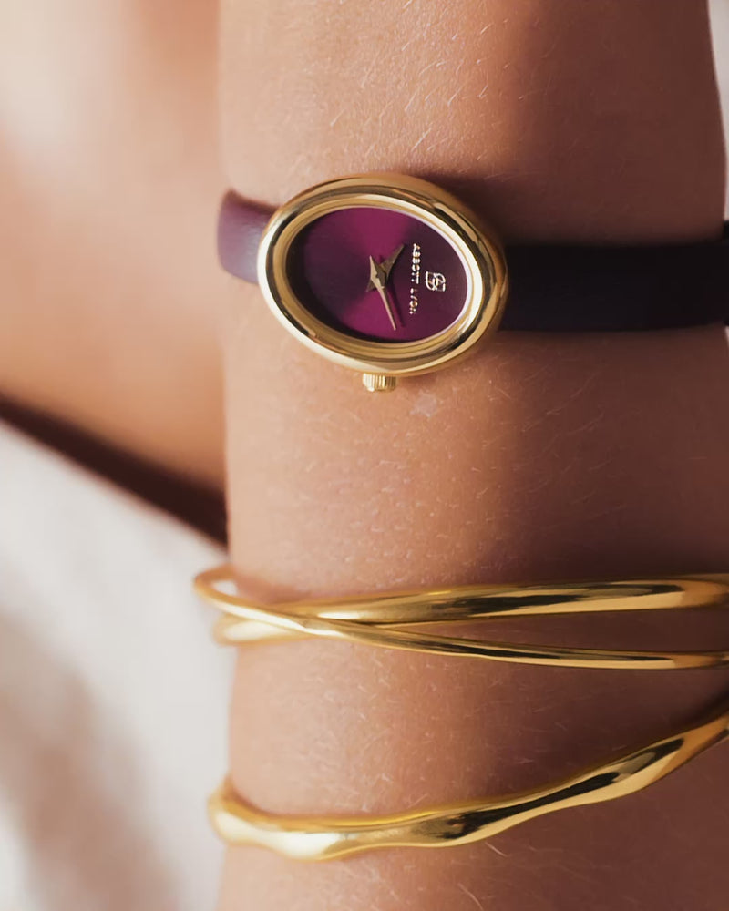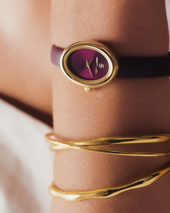 This vintage-inspired set blends classic and modern style. It features a molten gold cuff, a crossover bangle and our burgundy leather oval watch. Designed to be worn all day, every day, it's the perfect stack to gift or keep all to yourself.