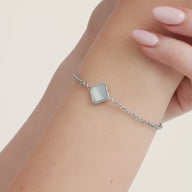 This dainty silver bracelet shows off our beloved designer-inspired clover shape, set with the prettiest pearly inlay. Wear it on its own or stack it with your other favourites.