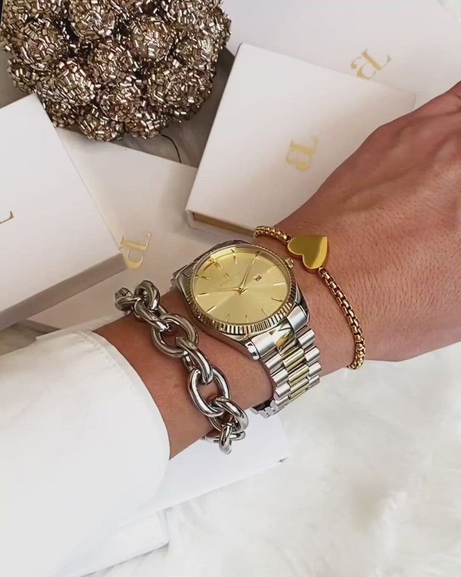 Our most luxurious watch collection to date, the stunning Belgravia is a beautiful designer-inspired piece that will dress up any outfit and is guaranteed to impress. Featuring a timeless champagne finish watch face, go all out with the ultra luxe President link chain in this show stopping champagne and silver mix. Your new best friend, the Belgravia hits all of the current trends and is a firm Abbott Lyon favourite!